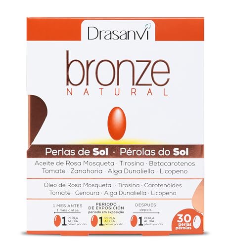 Consigue un bronceado dorado y uniforme con el acelerador de bronceado Drasanvi. Su fórmula con betacarotenos y extractos naturales, como rosa de mosqueta y alga Dunaliella, no solo intensifica el tono de tu piel, sino que también la protege de los dañinos rayos UVA y ayuda a prevenir el envejecimiento prematuro. La vitamina E y el licopeno aseguran una hidratación óptima durante 30 días de uso continuo. ¡Perfecto para lucir un bronceado radiante!