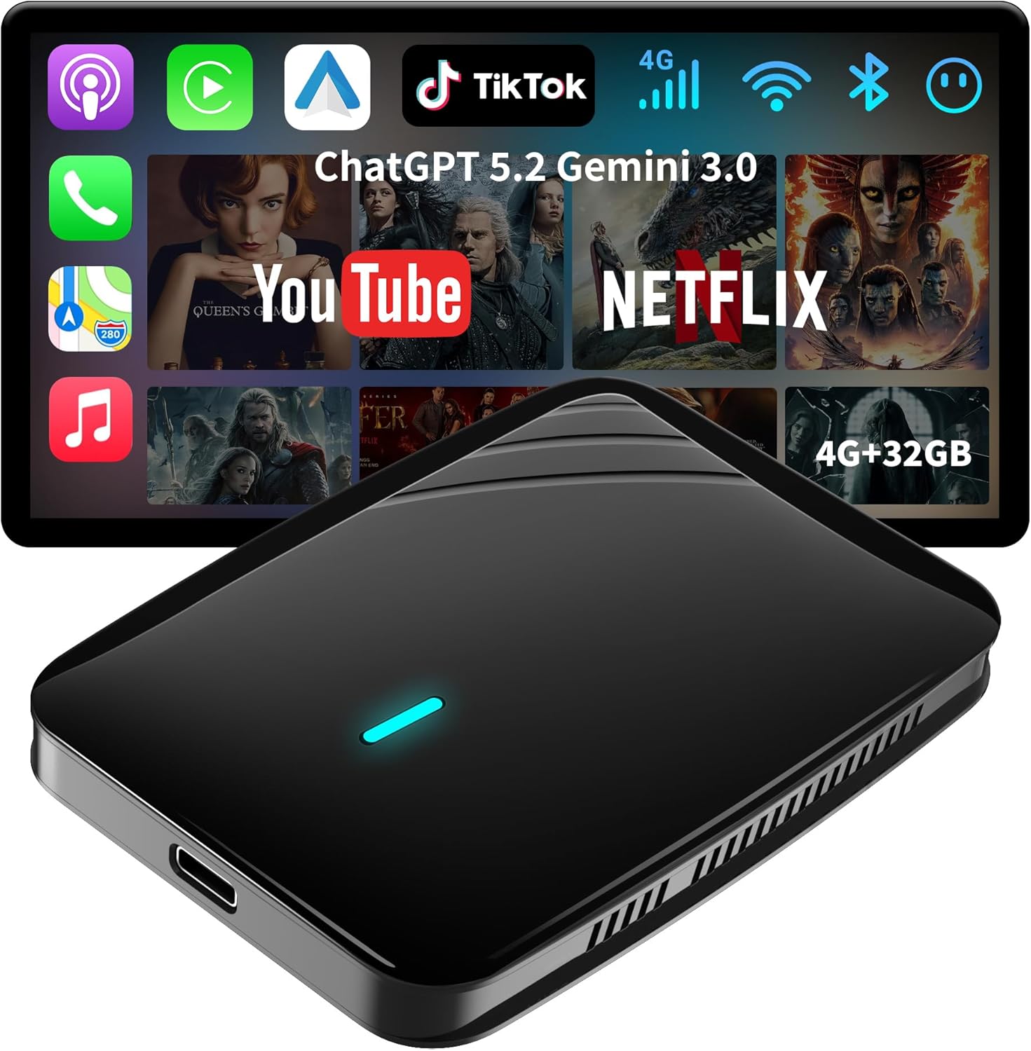 Transforma tu experiencia de conducción con este adaptador AI Box CarPlay inalámbrico. Con 4GB de RAM y 32GB de almacenamiento, disfrutarás de un rendimiento fluido y acceso a tus aplicaciones favoritas como YouTube y Netflix directamente en la pantalla de tu coche. Su conexión WiFi dual y Bluetooth garantizan una conectividad sin interrupciones, y el control por voz con DriveChat AI te permitirá mantener la atención en la carretera.