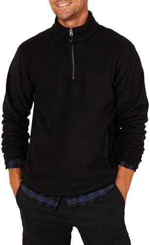 Amazon Essentials Men's Quarter Zip Fleece Jacket, Black, L