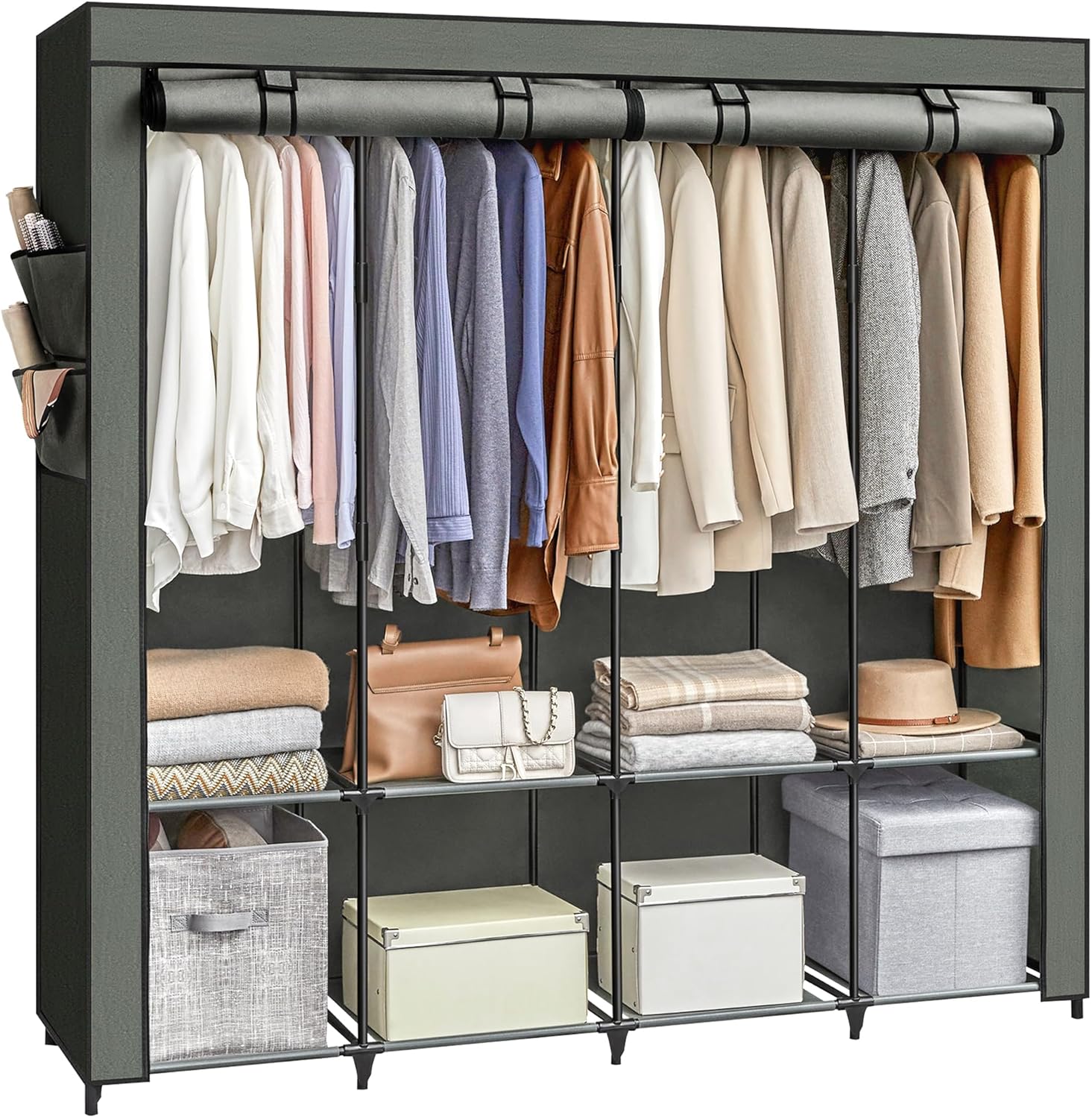 Descubre la solución perfecta para mantener tu ropa y accesorios organizados con este armario de tela. Con 4 barras para colgar y estantes inferiores, ofrece un amplio espacio de almacenamiento. Además, cuenta con 4 bolsillos laterales para facilitar el acceso a tus accesorios. Su estructura de acero robusta y la funda de tela plegable garantizan durabilidad y comodidad. ¡Organiza tu hogar de forma práctica!
