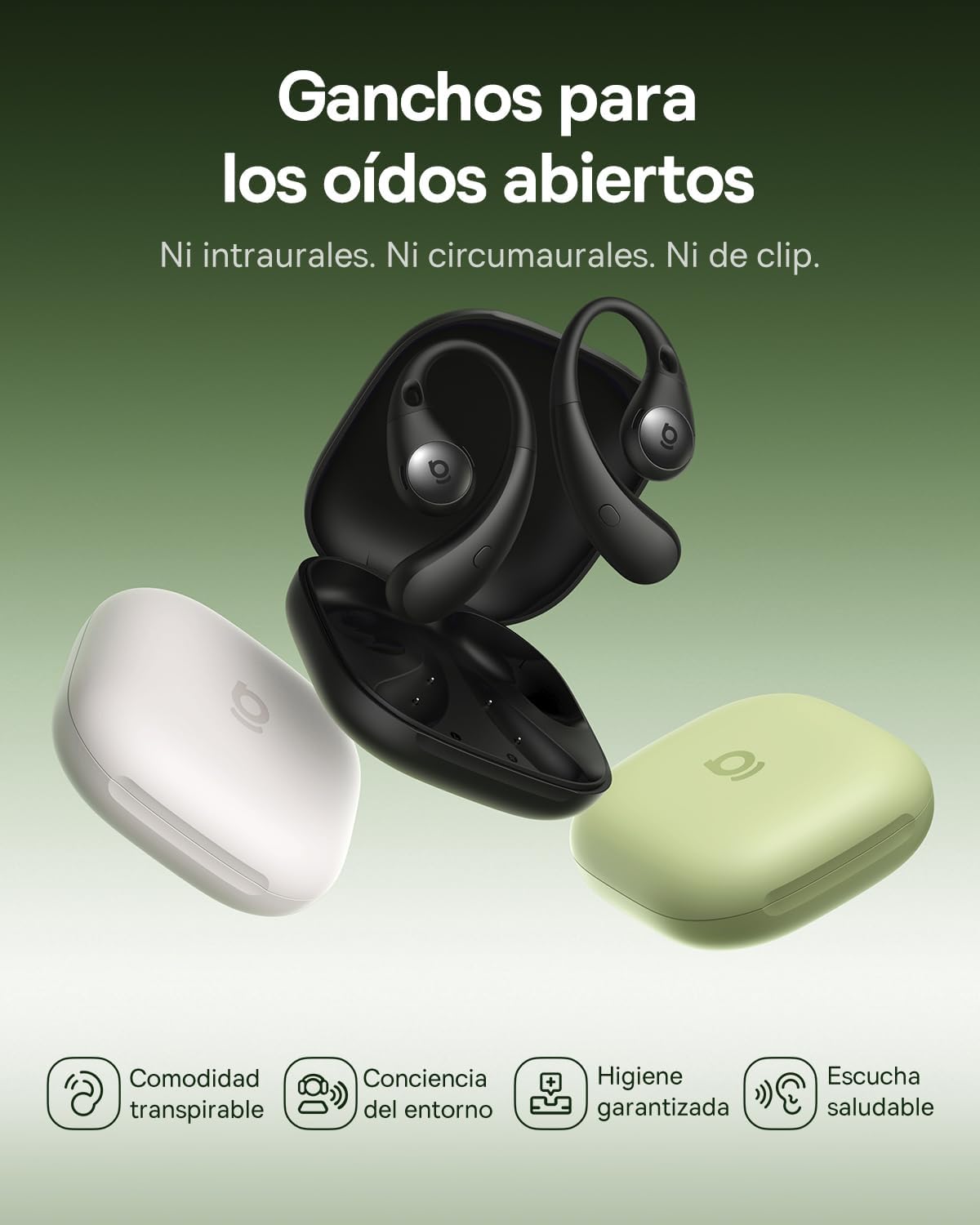 Conexión Bluetooth 6.0, 45 horas de reproducción, resistencia al agua IPX7, 4 micrófonos para llamadas claras.