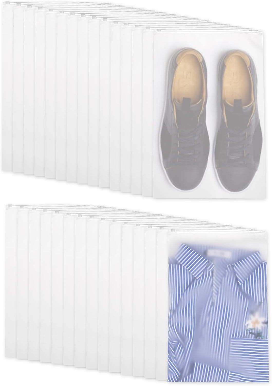 Descubre la solución perfecta para organizar tu equipaje con estas 30 bolsas zip grandes. Disponibles en dos tamaños (40 x 30 cm y 45 x 30 cm), son translúcidas y reutilizables, ideales para mantener tu ropa y zapatos en perfecto estado durante tus viajes. ¡No dejes que el desorden arruine tu aventura!