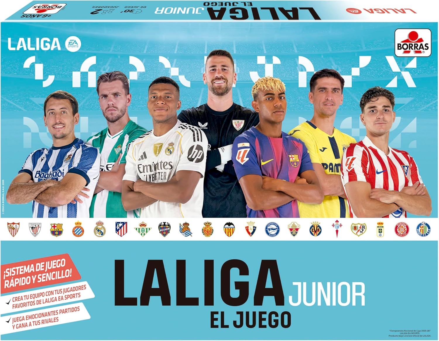 El juego de mesa perfecto para los jóvenes aficionados al fútbol. En Borras LALIGA Junior 2025/26, los niños podrán disfrutar de partidas rápidas de 30 minutos, donde podrán comprar y vender jugadores para formar su equipo ideal con los últimos fichajes de la temporada. Ideal para disfrutar en familia o con amigos.