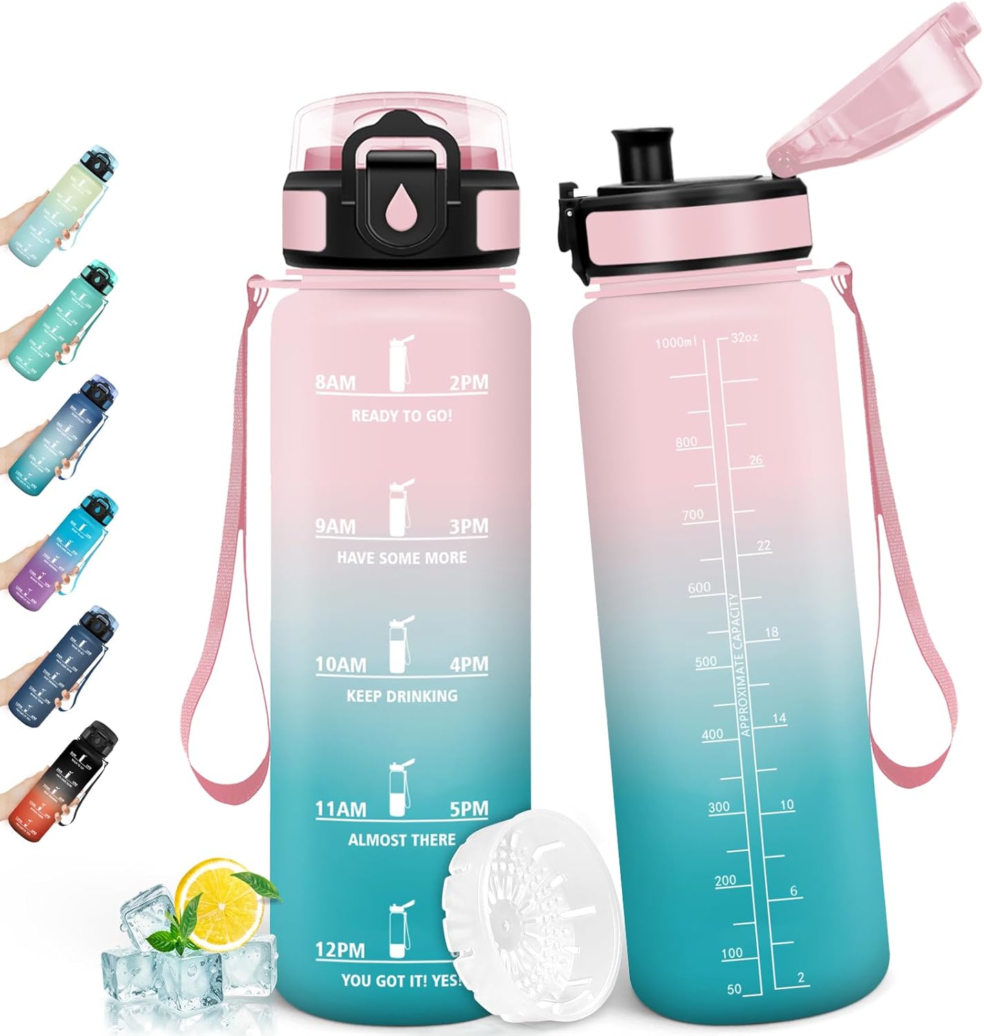 La botella de agua HoneyHolly de 1 litro es la compañera ideal para mantenerte hidratado en cualquier lugar. Fabricada sin BPA, garantiza tu salud mientras disfrutas de su diseño portátil y práctico. Con un marcador de tiempo motivacional, podrás llevar un control de tu ingesta diaria. Su tapa abatible es a prueba de fugas, perfecta para el gimnasio, la oficina o tus aventuras al aire libre.
