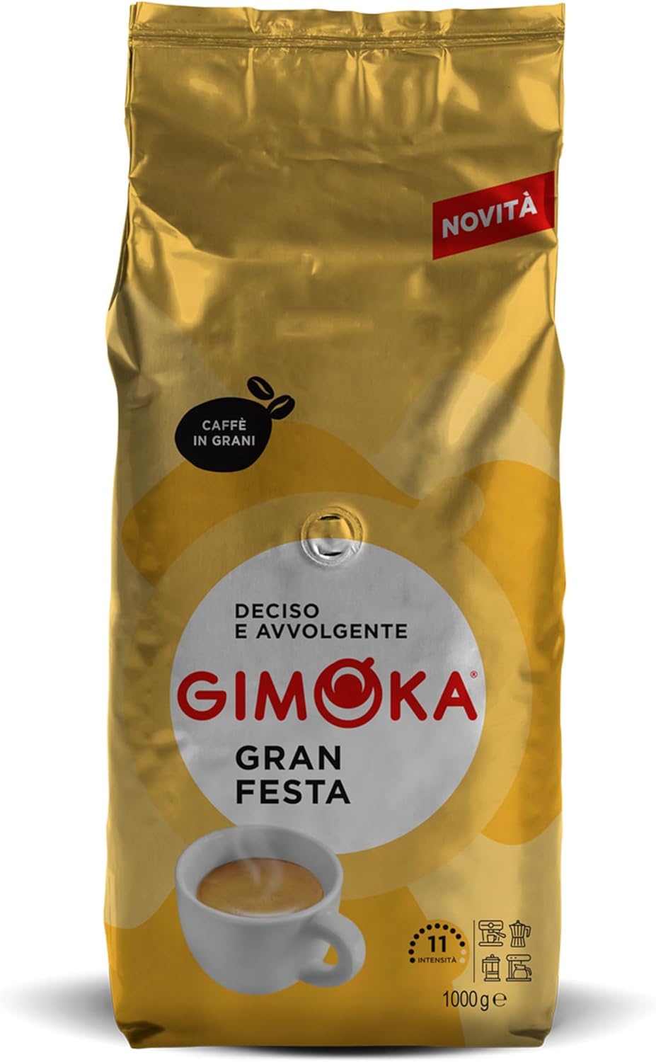 Descubre el auténtico sabor italiano con el café en grano Gimoka Gran Festa. Este paquete de 1 kg ofrece una intensidad 11, ideal para disfrutar de un café fuerte y lleno de sabor. Perfecto para cualquier momento del día.