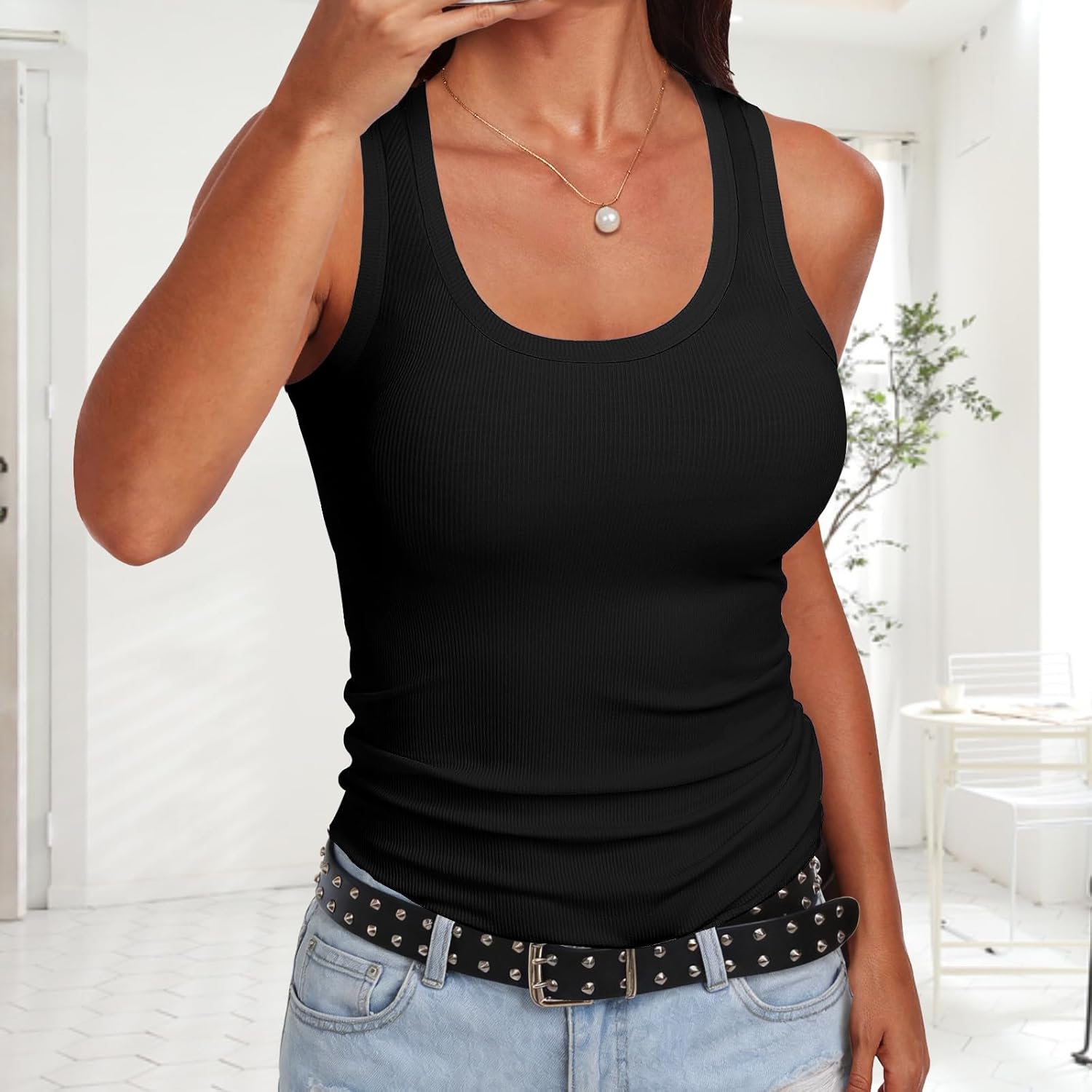 Descubre la camiseta sin mangas acanalada, una prenda básica y versátil ideal para el verano. Confeccionada en un material suave y elástico, ofrece un ajuste cómodo que favorece cualquier figura. Su diseño con cuello en U la convierte en la opción perfecta para combinar con tus looks casuales o utilizar bajo otras prendas. Disponible en 6 colores y tallas desde la S hasta la XXL.