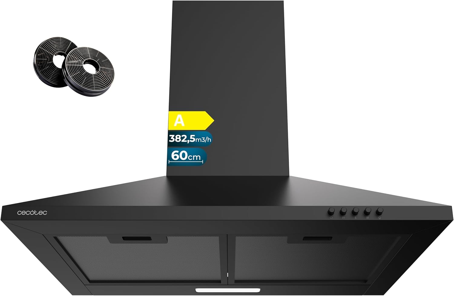 Descubre la campana extractora piramidal de 60 cm de Cecotec, perfecta para mantener tu cocina libre de olores. Con un elegante acabado pintado en negro, ofrece una potente succión de 382,5 m³/h y cuenta con tres velocidades para adaptarse a tus necesidades. Incluye filtros de carbono para una mayor eficiencia y luz LED para una mejor visibilidad. ¡No te pierdas esta oportunidad!
