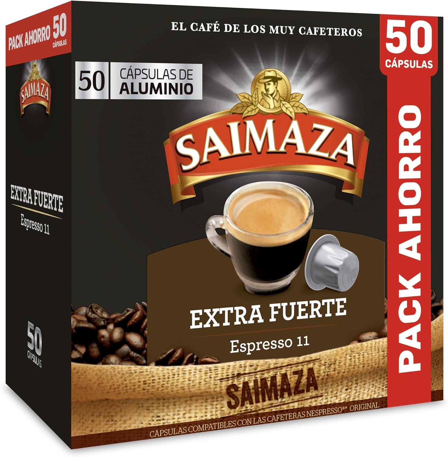 Descubre el auténtico sabor del café con las cápsulas Saimaza Extra Fuerte. Con una intensidad de 11, estas cápsulas ofrecen un café robusto y lleno de carácter que satisfará a los amantes del buen café. Vienen en un práctico pack de 50, compatibles con máquinas Nespresso, ideales para disfrutar en casa o en la oficina.