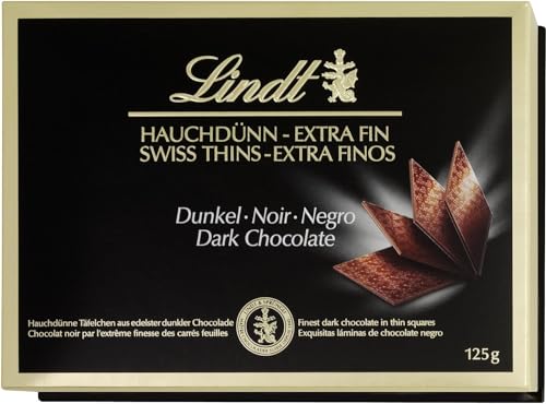 Descubre el placer del chocolate negro Lindt Swiss Thins, con su textura extrafina y un sabor intenso que encantará a los amantes del chocolate. Perfecto para compartir en momentos especiales, este chocolate combina la calidad suiza con un diseño elegante. ¡Hazte con él y disfruta de cada bocado!