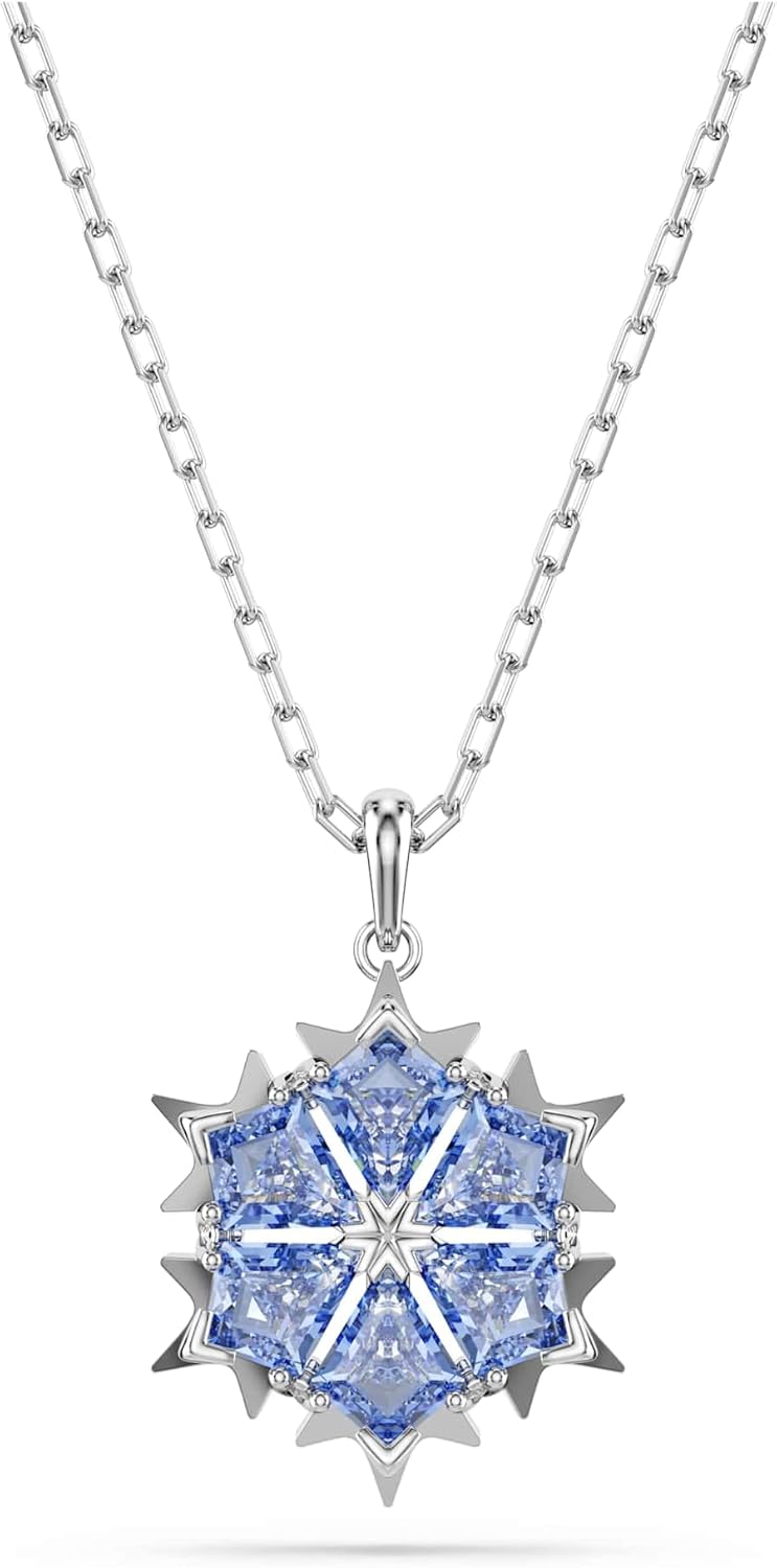 Descubre la elegancia invernal con este colgante de Swarovski en forma de copo de nieve. Su diseño en cristal azul y grisáceo, combinado con un baño de rodio, resalta un brillo excepcional. Perfecto para cualquier ocasión, este colgante incluye una delicada cadena y es de talla única. ¡Hazte con él y deslumbra!