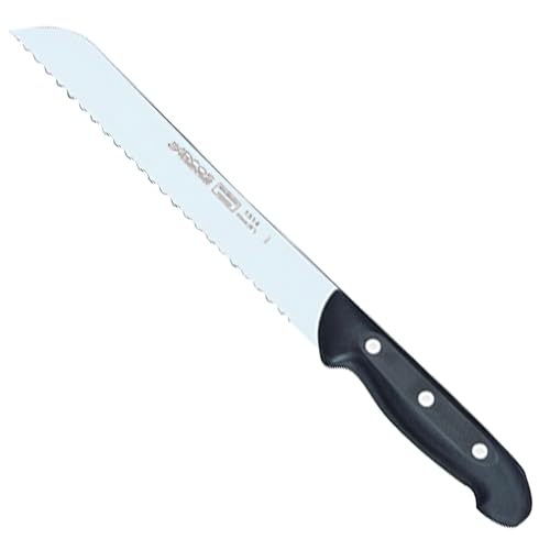 Descubre el cuchillo panadero Arcos Maitre de 210 mm, diseñado para ofrecer cortes perfectos en pan, bollería y pasteles. Su hoja de acero inoxidable Nitrum garantiza durabilidad y un filo excepcional, mientras que su mango ergonómico proporciona un agarre cómodo y seguro. Ideal para el uso diario en cualquier cocina.