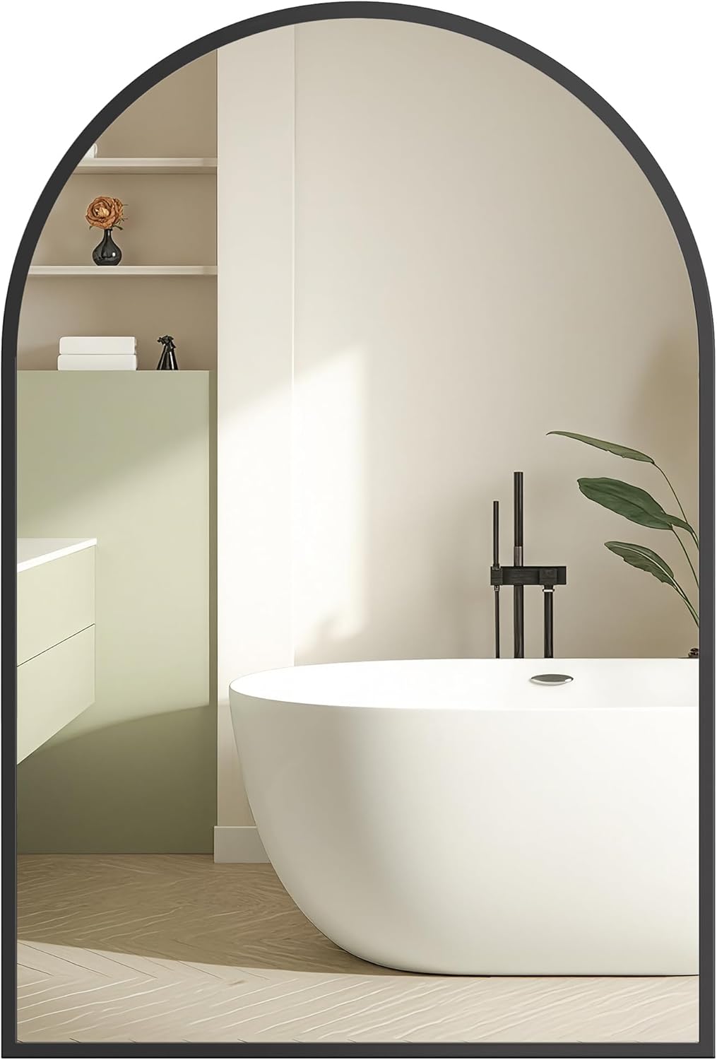Este espejo arqueado de 91 x 61 cm es la adición perfecta para cualquier habitación de tu hogar. Con un elegante marco de aluminio en color negro y una lámina de seguridad, combina estilo y funcionalidad. Su fácil montaje lo convierte en una opción ideal para decorar tu salón o dormitorio.