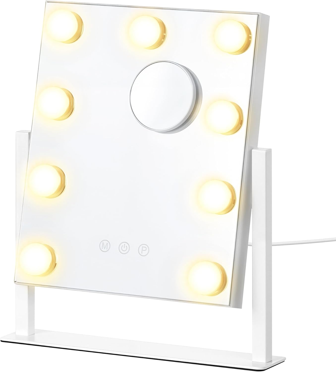 Transforma tu tocador con un espejo de maquillaje que cuenta con 9 bombillas LED regulables. Su control táctil hace que sea fácil ajustar la luz a tu gusto. Con un tamaño ideal de 25x30 cm, también incluye un soporte para teléfono y puertos de carga, lo que lo convierte en una herramienta práctica y moderna para tu rutina de belleza.