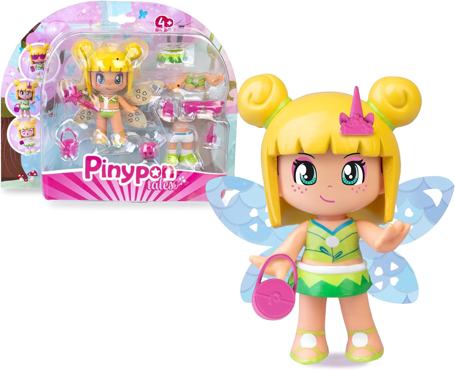 Descubre la magia con esta encantadora figura Pinypon Hada Mágica. Viene con alas reversibles decoradas con purpurina dorada y azul, además de accesorios y piezas intercambiables con temática de verano. Diseñada para estimular la imaginación de los más pequeños, es perfecta para niños a partir de 4 años.