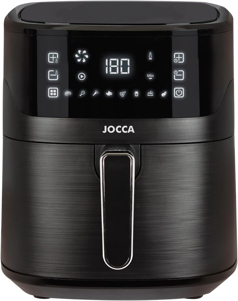 La freidora de aire Jocca de 6.5 litros permite disfrutar de comidas saludables sin necesidad de aceite, manteniendo el sabor y la textura de tus platos favoritos. Gracias a su temporizador y control de temperatura ajustables, puedes adaptar la cocción a diferentes recetas. Incluye un sistema de apagado automático que garantiza seguridad y comodidad en cada uso.
