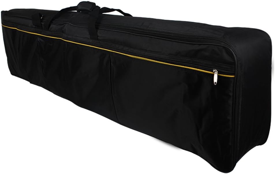 Descubre la funda acolchada perfecta para tu teclado de 88 teclas. Diseñada en resistente tela Oxford, ofrece un interior acolchado para absorber golpes y un práctico bolsillo con cremallera para tus accesorios. Ideal para músicos que necesitan transportar su instrumento de manera segura.