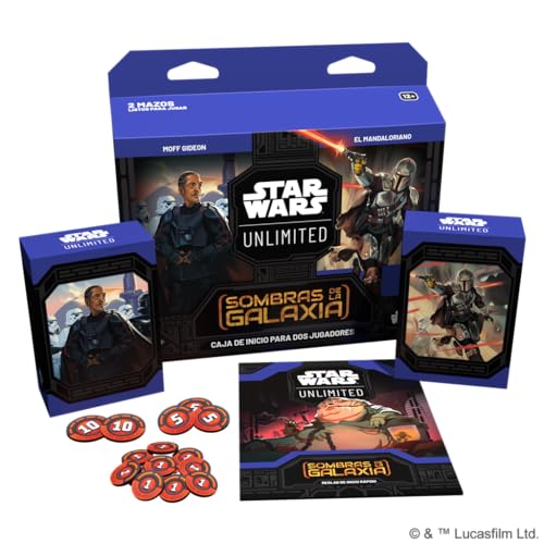 Descubre el emocionante mundo de Star Wars Unlimited con esta caja de inicio del juego de cartas coleccionables. Incluye dos mazos preconstruidos, cartas exclusivas y todos los accesorios necesarios para disfrutar de partidas rápidas y llenas de estrategia. Perfecto para aquellos que quieren empezar a jugar en pareja y sumergirse en la galaxia de Star Wars.