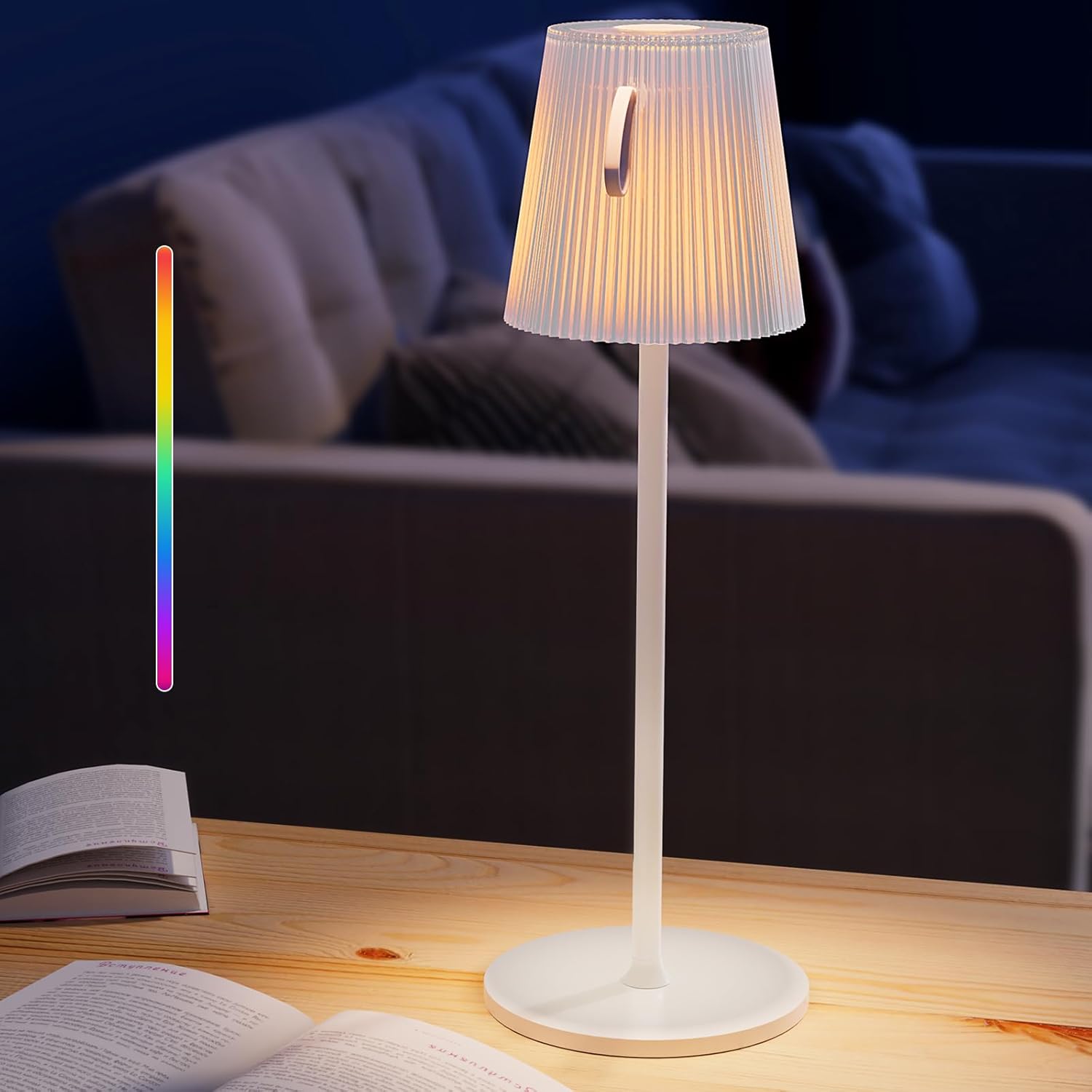 Descubre la lámpara de mesa recargable RGB de Onherm, una opción perfecta para iluminar tus espacios sin preocuparte por los cables. Con un diseño moderno en color blanco, esta lámpara es ideal para crear un ambiente acogedor y relajante en tu dormitorio, salón o escritorio. Ofrece una luz suave y cómoda, ideal para cualquier momento del día.