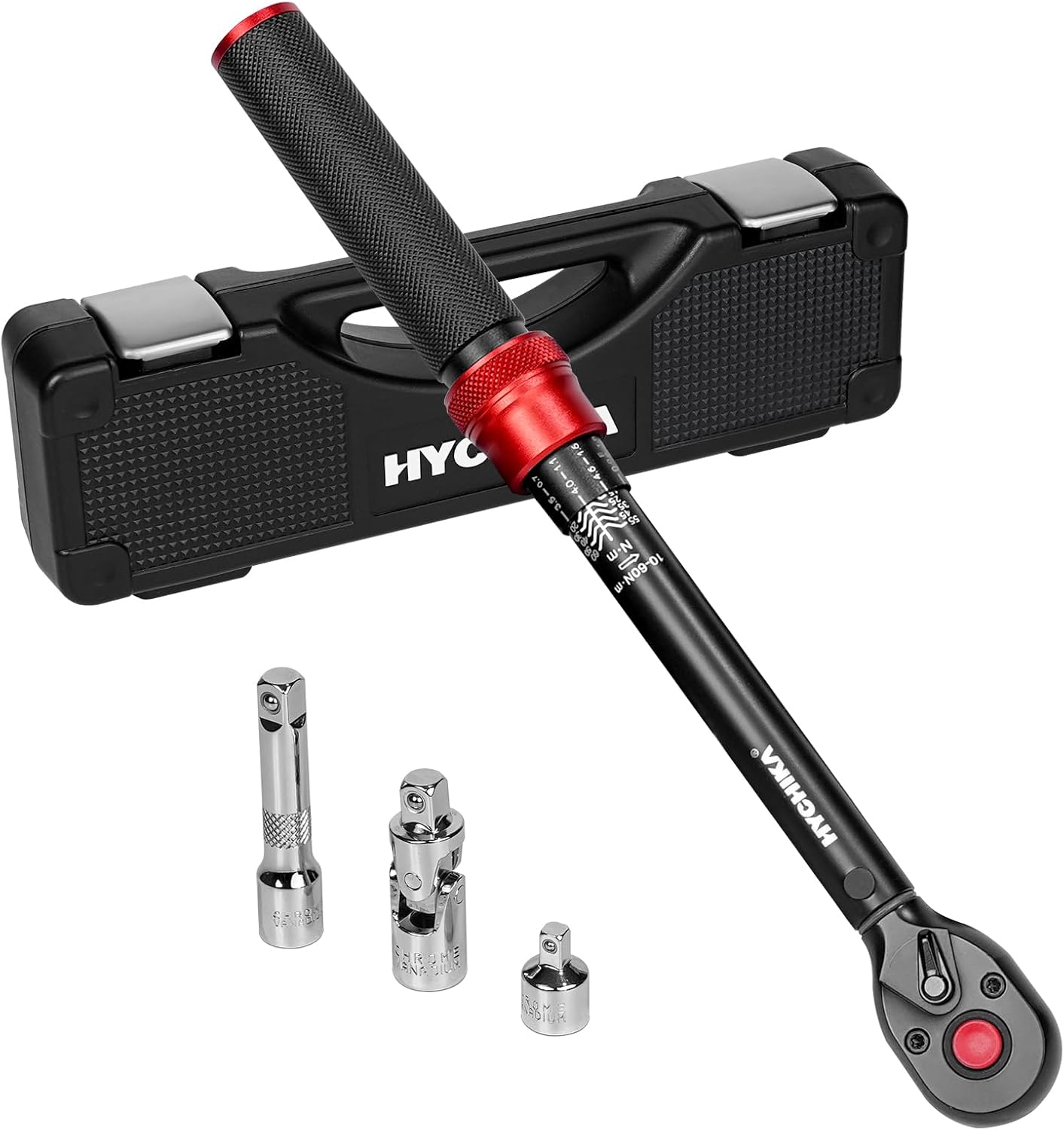 Mejora tu caja de herramientas con esta llave dinamométrica de Hychika. Ofrece un rango de torque de 10 a 60 Nm, con una precisión de ±2%, ideal para trabajos en coche, moto y bicicleta. Su mecanismo de 72 dientes permite un uso eficiente en espacios reducidos. Además, incluye adaptador de 3/8 a 1/4, junta universal y barra de extensión de 75 mm, todo por un precio muy atractivo.
