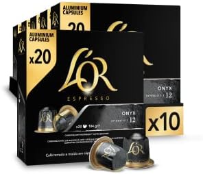 Disfruta de 200 cápsulas de café L'OR Onyx, intensidad 12, perfectas para tu cafetera Nespresso. Estas cápsulas ofrecen un sabor rico y aromático que te encantará. Aprovecha esta oferta flash en Amazon y ahorra un 39% en tu compra. ¡No esperes más para disfrutar de un café excepcional en casa!
