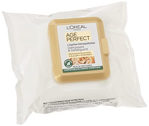Descubre las toallitas desmaquillantes L'Oréal Paris Age Perfect, especialmente diseñadas para piel madura. Con un pack de 25 unidades, son perfectas para eliminar el maquillaje de rostro y ojos de manera rápida y efectiva. Su fórmula hidratante proporciona un cuidado adicional a tu piel, dejándola fresca y suave.