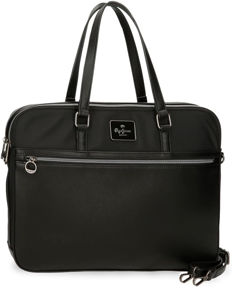 Descubre el maletín Pepe Jeans Christine, la combinación perfecta de estilo y funcionalidad. Diseñado para profesionales en movimiento, este maletín negro cuenta con un amplio espacio para tu portátil y tablet, manteniendo todo organizado en sus múltiples compartimentos. Fabricado en poliéster con elegantes detalles en piel sintética, es ideal para el trabajo o viajes. Con medidas de 40x30x5 cm, es lo suficientemente compacto para llevarlo cómodamente. No dejes pasar esta oportunidad de lucir bien mientras trabajas.