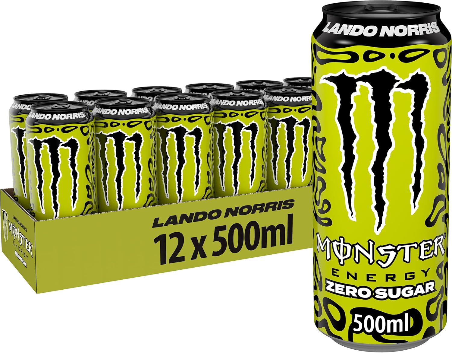 Descubre el pack de 24 latas de Monster Lando Norris Zero Azúcar, cada una de 500ml. Disfruta de una bebida energética refrescante que te brinda el impulso que necesitas gracias a su mezcla de cafeína, taurina y vitaminas B, sin añadir azúcar. Perfecto para mantenerte activo durante todo el día.