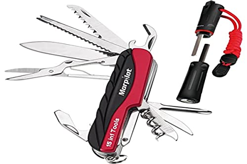 Versátil con 15 funciones, Material duradero de acero inoxidable, Incluye accesorios de seguridad como brújula y silbato