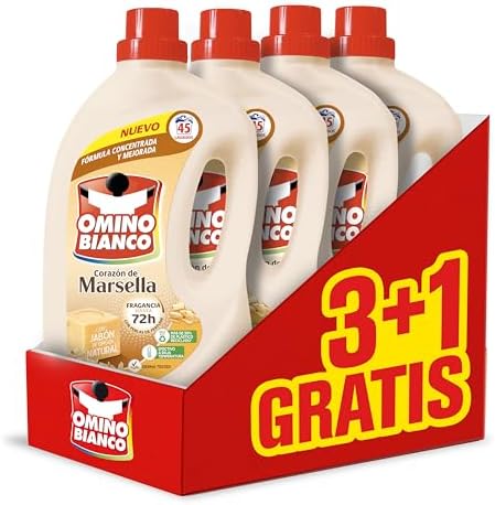 Descubre el pack de 4 detergentes líquidos Omino Bianco Marseille, con un total de 45 dosis y 7200 ml. Aprovecha esta oferta con un descuento del 27% y mantén tu ropa fresca y limpia por más tiempo. ¡No te lo pierdas!