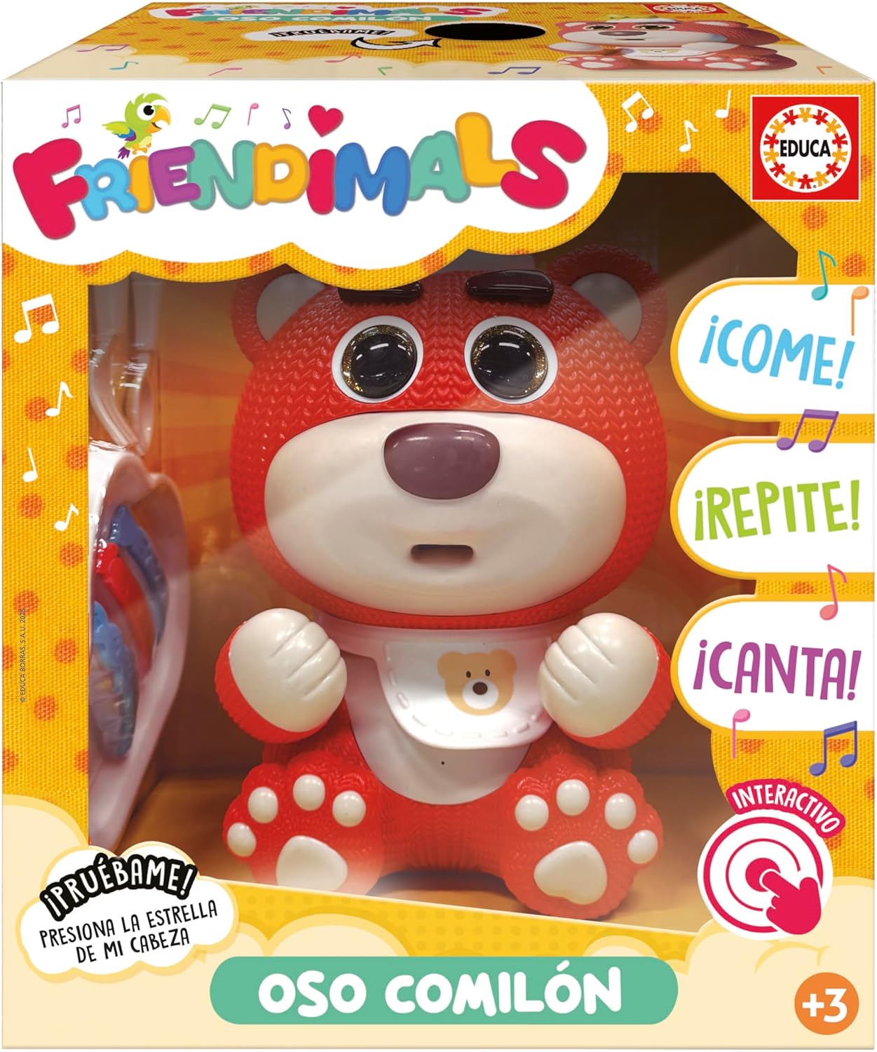 Descubre la diversión educativa con el Oso Comilón Interactivo de Educa Friendimals. Este adorable oso come, canta y repite lo que dices, haciendo que cada momento de juego sea especial. Viene con accesorios como alimentos y un babero, ideales para una experiencia más completa. Además, cuenta con control de volumen y un modo de descanso con canciones suaves para esos momentos tranquilos. ¡Es el regalo perfecto para niños de 3 a 5 años!