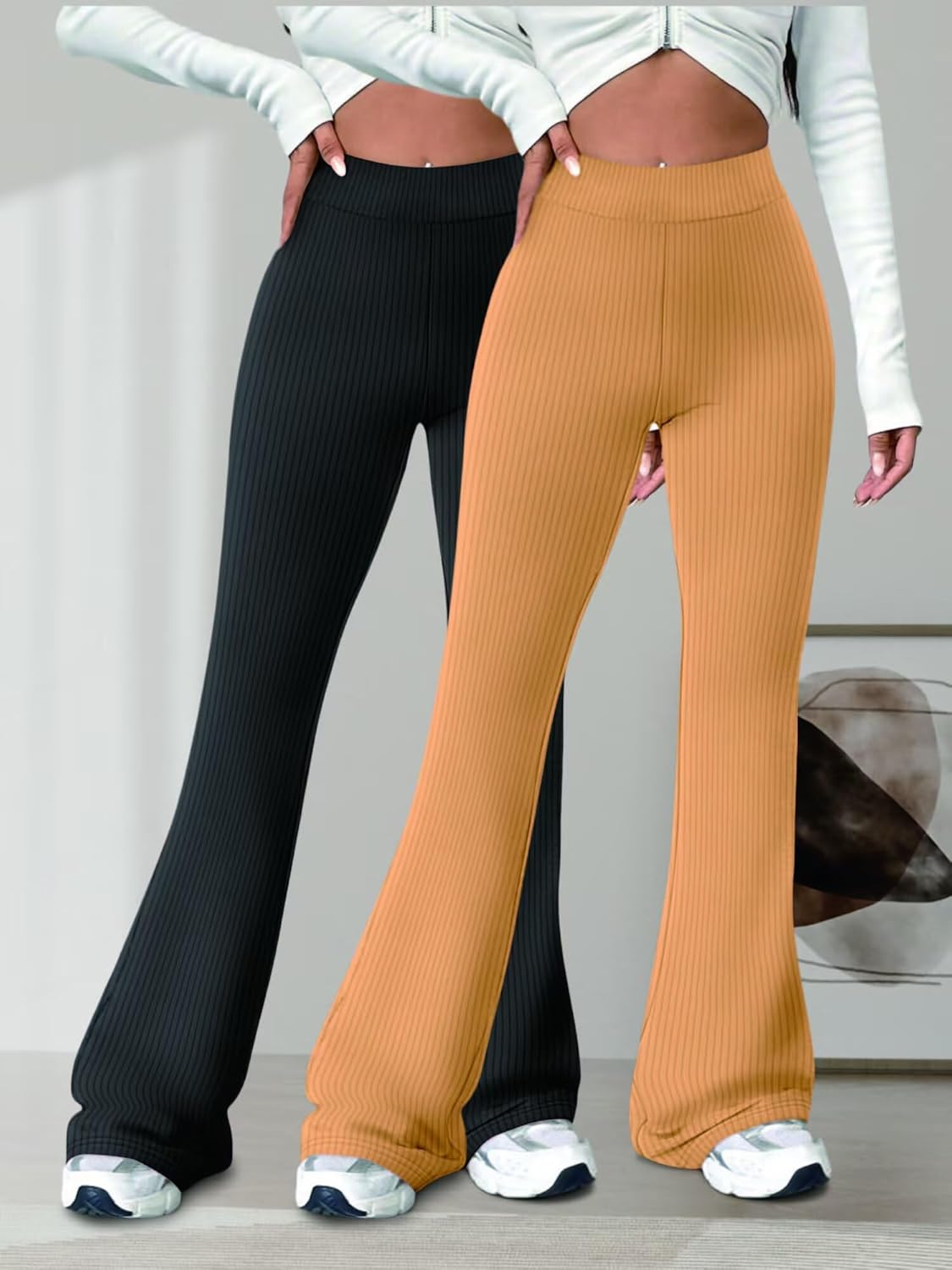 Descubre la comodidad y el estilo de este pack de 2 pantalones de yoga retro. Con un diseño acampanado y tejido elástico, son perfectos para tus entrenamientos o para el día a día. Su efecto adelgazante resalta tu figura, y están disponibles en varias tallas y colores para que elijas el que más te guste.