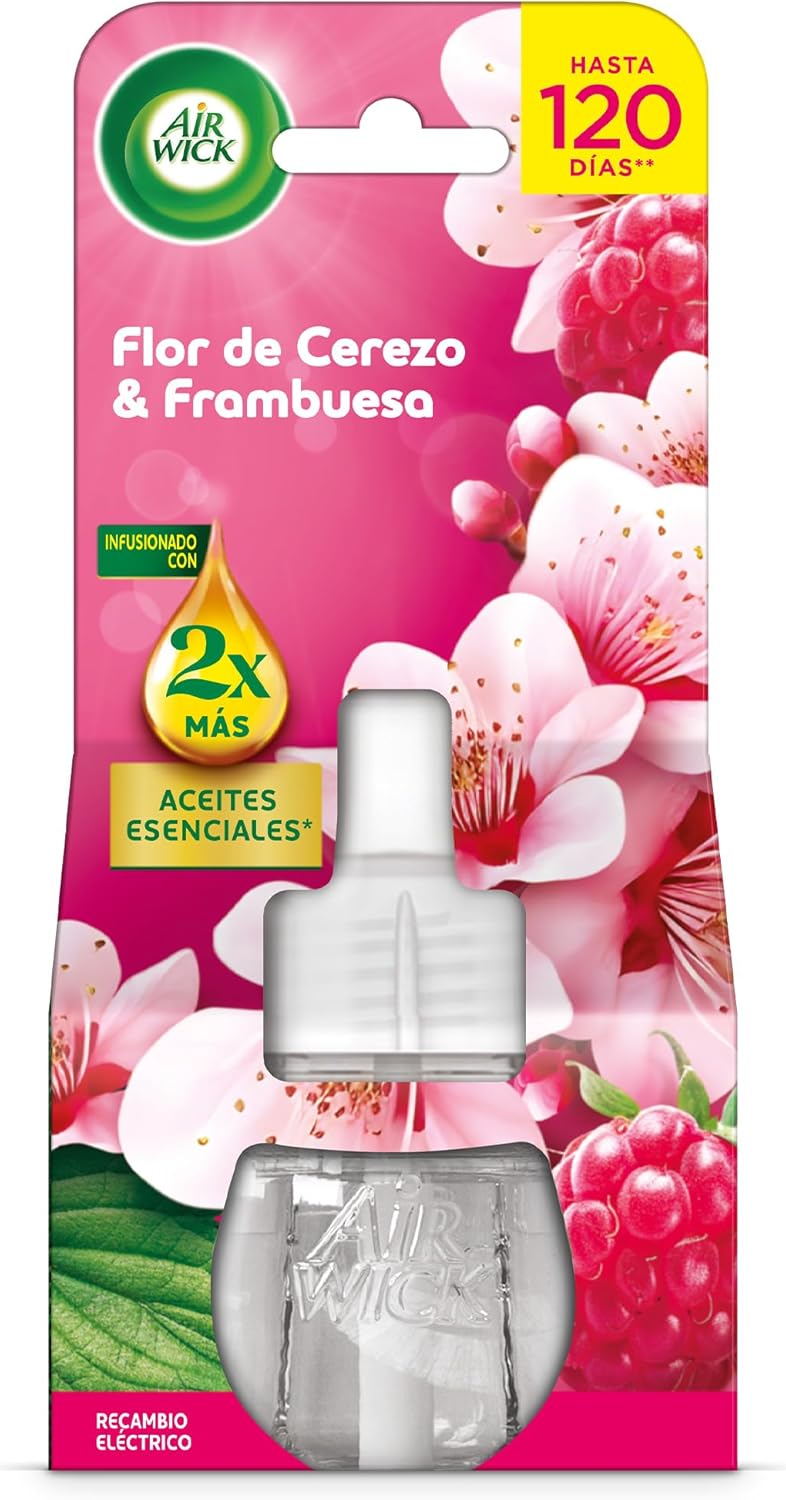 Descubre el pack de 3 recambios para ambientador eléctrico con el encantador aroma de Flor de Cerezo y Frambuesa. Cada recambio está infusionado con el doble de aceites esenciales, asegurando una fragancia intensa que perdura hasta por 120 días. Además, su intensidad es regulable, permitiéndote ajustar el aroma a tu gusto. Un producto que no solo perfuma tu hogar, sino que también cuenta con un embalaje reciclable, cuidando del medio ambiente.
