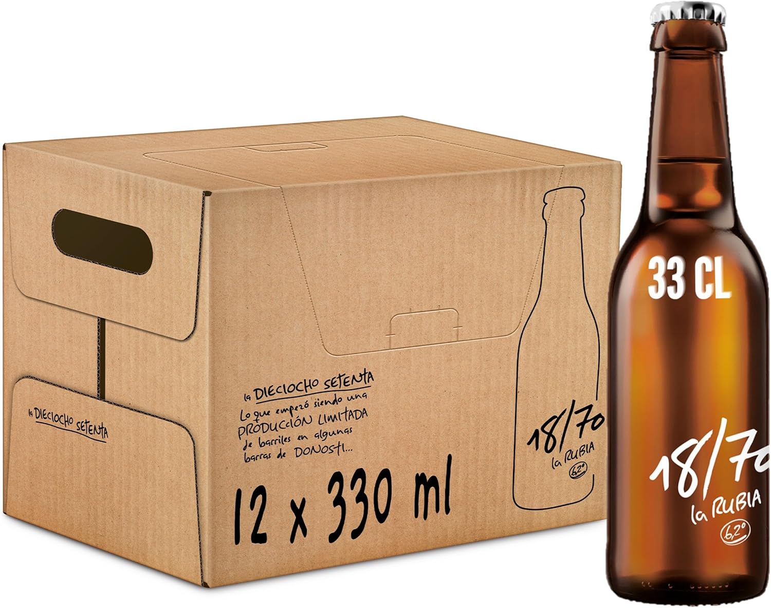 Disfruta de un refrescante pack de 12 botellas de La Rubia 18/70, una cerveza lager especial de 33cl. Elaborada con malta tostada y lúpulos Nugget y Perlé, esta cerveza se caracteriza por su sabor con cuerpo y ligero amargor, con un contenido de alcohol del 6,2% vol. Perfecta para ser servida bien fría, entre 0° y 3°C. Aprovecha esta increíble oferta y deleita tu paladar.