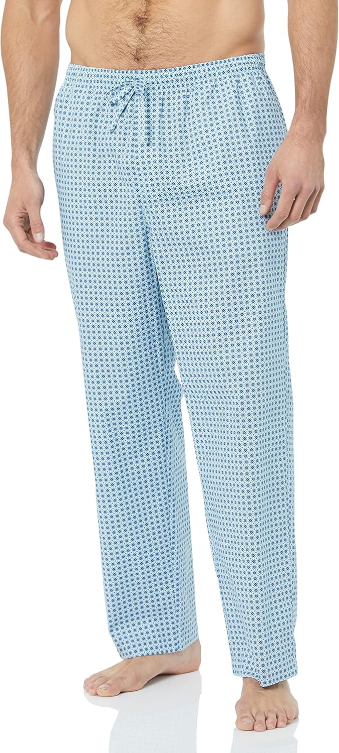 Aprovecha esta oferta en pantalones de pijama para hombre. Con un corte recto y prácticos bolsillos, son ideales para tus momentos de descanso. Su estampado geométrico azul le da un toque moderno y fresco. Disponible en tallas M, XS y XL, ¡encuentra la tuya y disfruta de la comodidad!