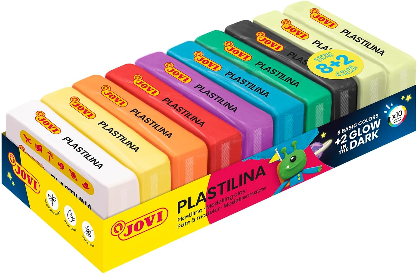 Descubre la plastilina que ilumina la creatividad de tus hijos. Este pack incluye 10 pastillas de 50 gramos, con 8 colores básicos y 2 fosforescentes. Totalmente no tóxica, es segura para niños a partir de 3 años y perfecta para todo tipo de manualidades y juegos creativos.