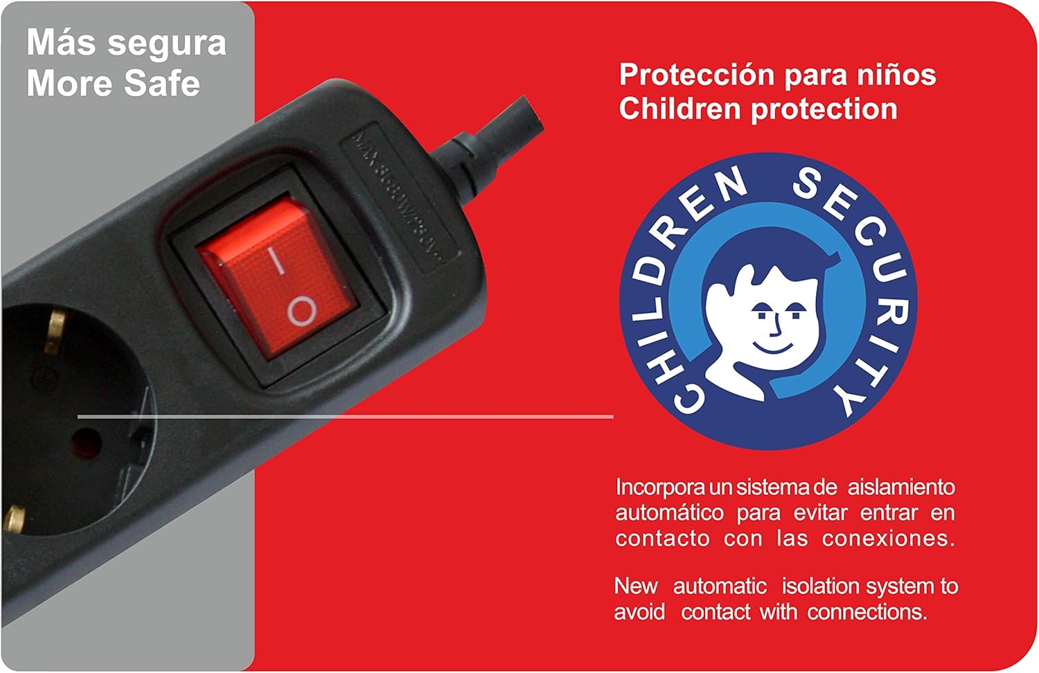 6 tomas de corriente, cable largo, protección infantil y contra sobretensiones