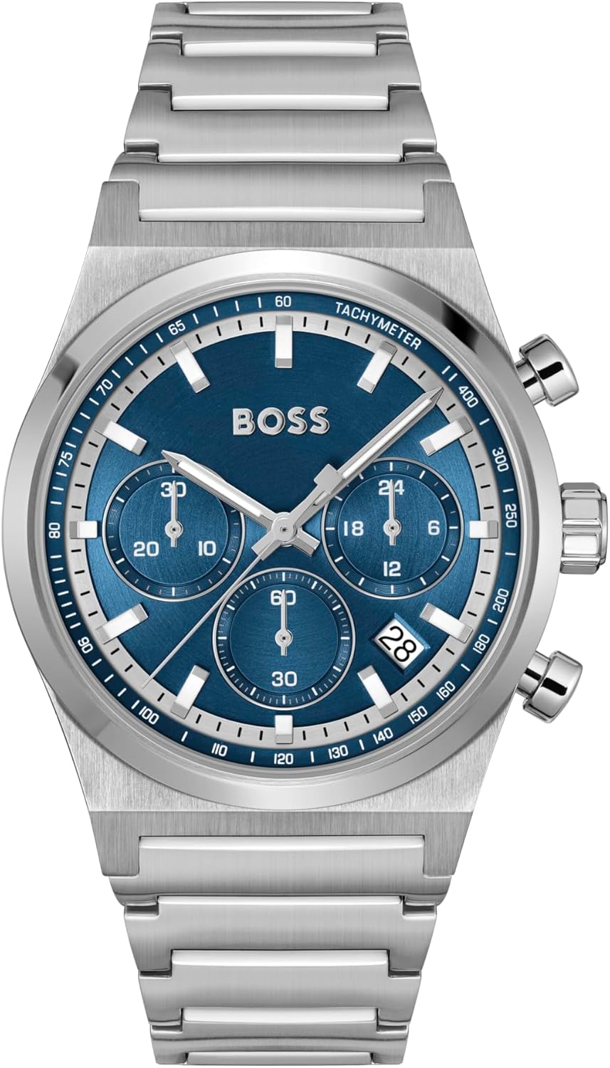 Descubre el elegante reloj cronógrafo de BOSS, diseñado para el hombre moderno. Con una correa de acero inoxidable y un atractivo color azul oscuro, este reloj es ideal tanto para ocasiones formales como para el día a día. Aprovecha la oferta y actualiza tu colección de accesorios con este modelo excepcional.