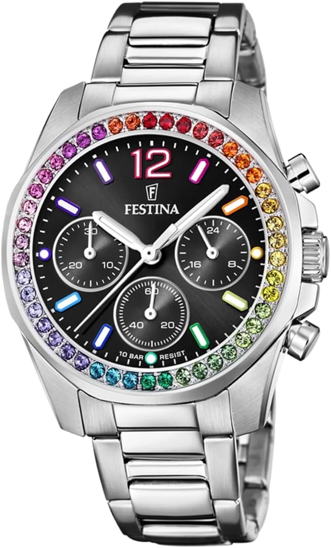 Descubre el elegante reloj analógico Festina para mujer, fabricado en acero inoxidable 316L. Con un preciso movimiento de cuarzo cronógrafo y un cristal mineral de alta resistencia, es perfecto para cualquier ocasión. Además, su resistencia al agua hasta 10 ATM lo convierte en un accesorio ideal para el día a día.