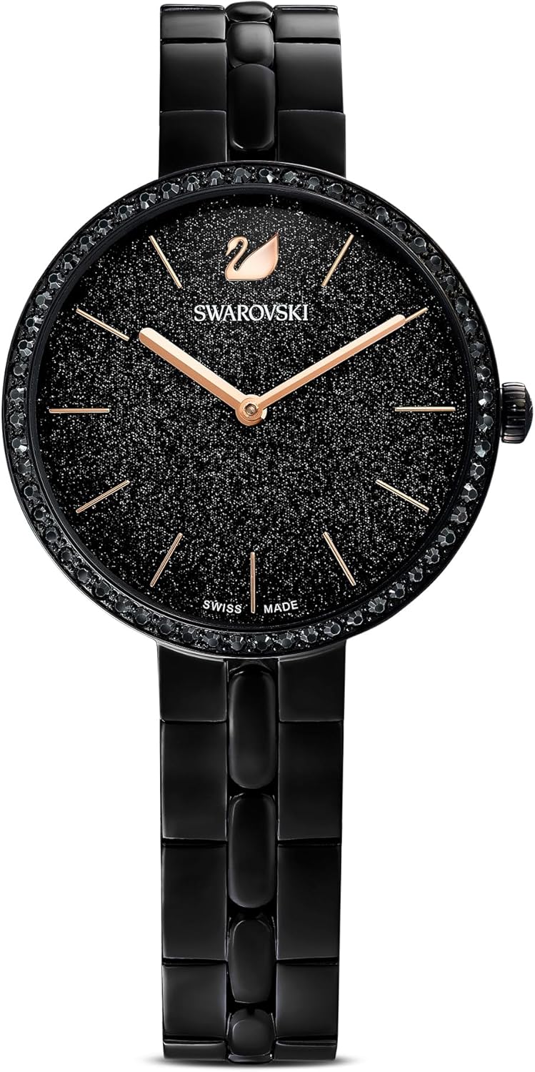 Descubre el reloj que redefine la elegancia con su acabado negro y los cristales icónicos de Swarovski. Este modelo de la colección Cosmopolitan, fabricado en Suiza, es perfecto para quienes buscan un estilo sofisticado. Aprovecha ahora el increíble descuento del 40% y lleva en tu muñeca un símbolo de distinción y calidad.
