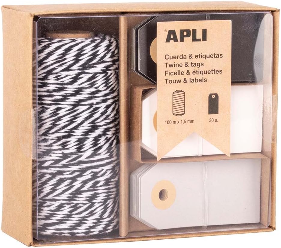 Descubre el set perfecto para dar un toque especial a tus regalos y manualidades. Este conjunto incluye una bobina de cuerda de algodón de 100 metros en elegante negro y blanco, acompañada de 30 etiquetas de regalo en tres colores vibrantes. Ideal para personalizar tus obsequios y hacer que cada detalle cuente.