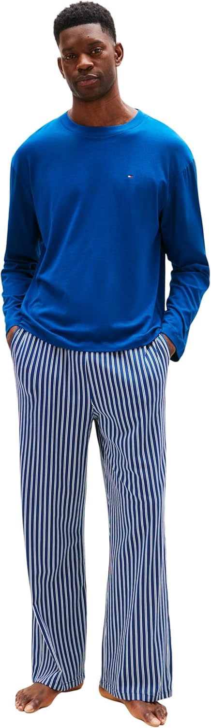 Descubre la comodidad y el estilo con este set de pijama de Tommy Hilfiger. Confeccionado en un material suave, perfecto para tus momentos de descanso. Su atractivo diseño en azul profundo con rayas densas lo convierte en una elección ideal para estar en casa. Disponible en tallas desde XS hasta XXL, ¡hay una para cada uno!