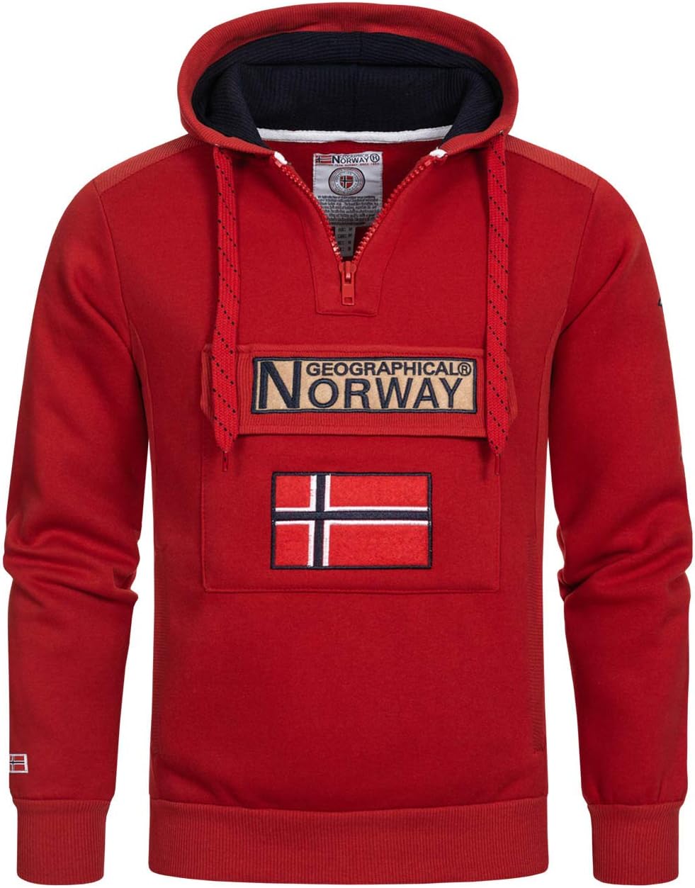 Descubre la sudadera con capucha perfecta para un estilo casual. Con un diseño icónico de Geographical Norway, cuenta con una media cremallera y un práctico bolsillo tipo canguro. Ideal para mantener el calor en esos días frescos, esta sudadera es un básico que no puede faltar en tu armario.