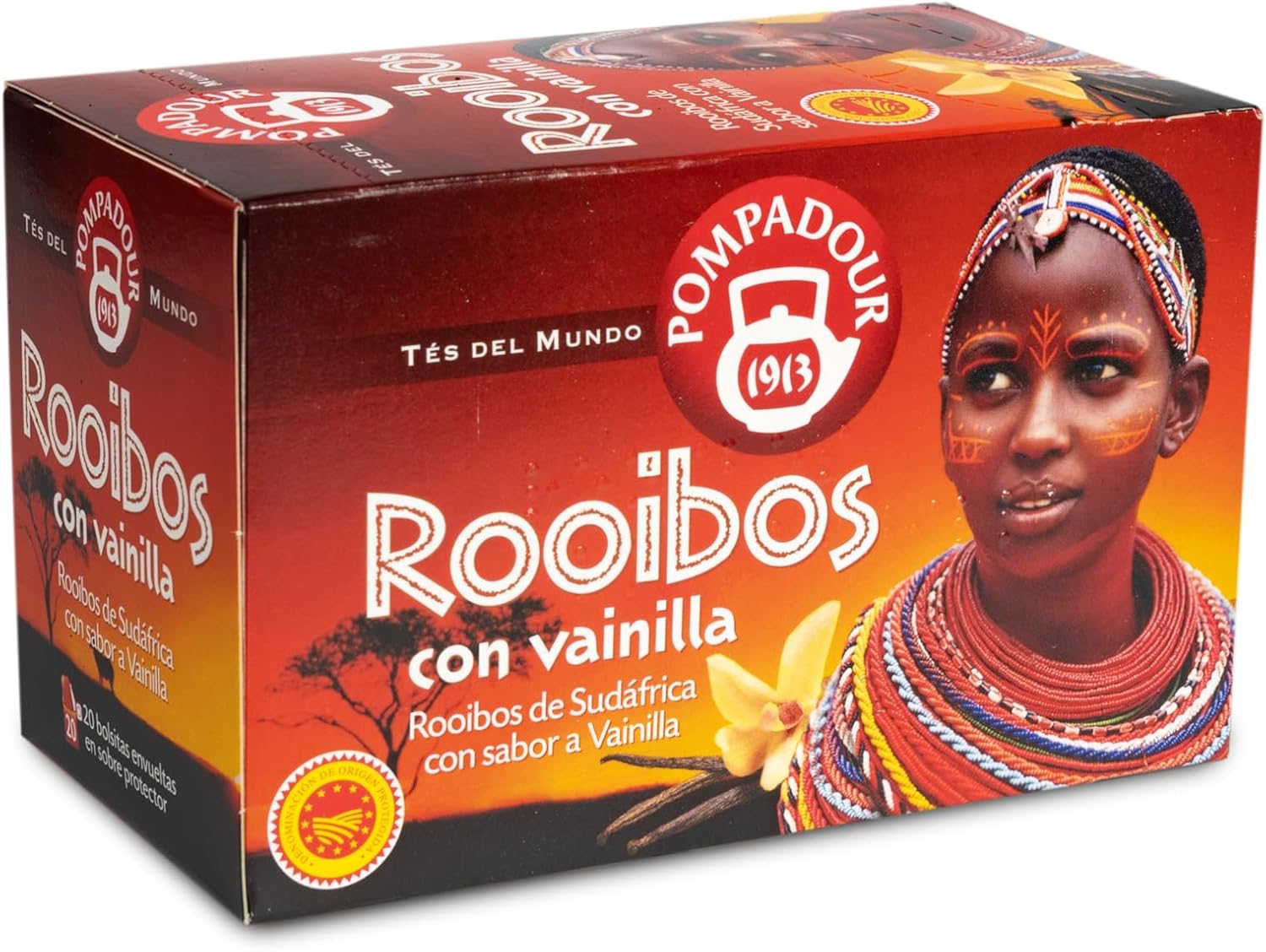 Descubre el delicioso sabor del té Rooibos Vainilla en un práctico pack de 20 bolsitas. Esta infusión, sin cafeína, es ideal para disfrutar en cualquier momento del día. Con su aroma a vainilla y un sabor suave, se convierte en la opción perfecta para tus momentos de relax. ¡Aprovecha la oferta!