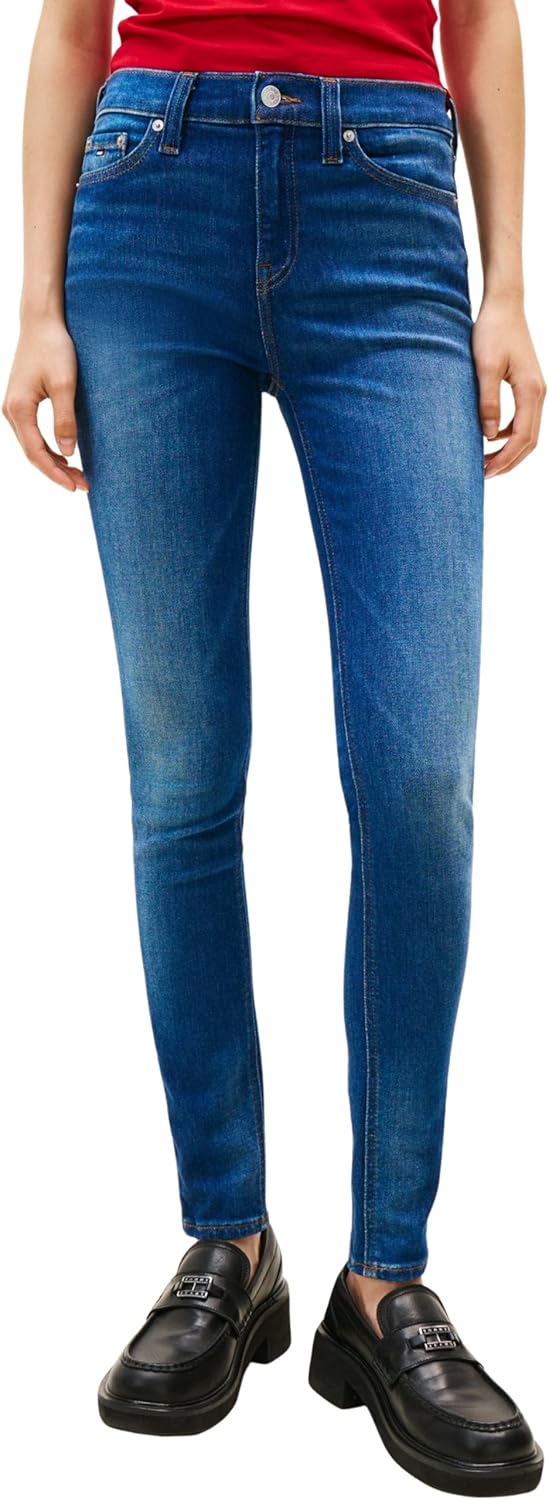 Descubre los vaqueros Nora de Tommy Jeans, diseñados para ofrecer un ajuste favorecedor gracias a su corte Mid Skinny. Confeccionados en denim elástico de alta calidad, te brindan la libertad de movimiento que necesitas para tu día a día. Disponibles en talla 28W/32L y otras más, son la elección perfecta para un look casual y moderno.