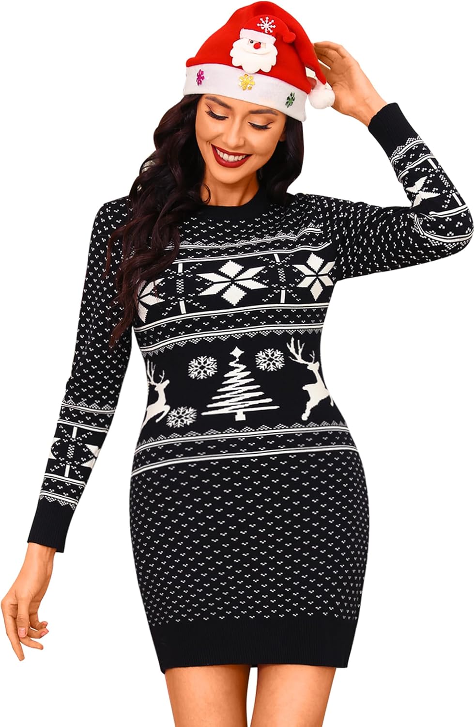 Adéntrate en el espíritu navideño con este hermoso vestido suéter para mujer. Confeccionado en un suave y cálido tejido, es perfecto para las frías jornadas de otoño e invierno. Su diseño elegante de manga larga y cuello redondo, adornado con festivos motivos navideños como copos de nieve y renos, lo convierte en la elección ideal tanto para un look casual como para celebraciones especiales. ¡Hazte con él y destaca en estas fiestas!