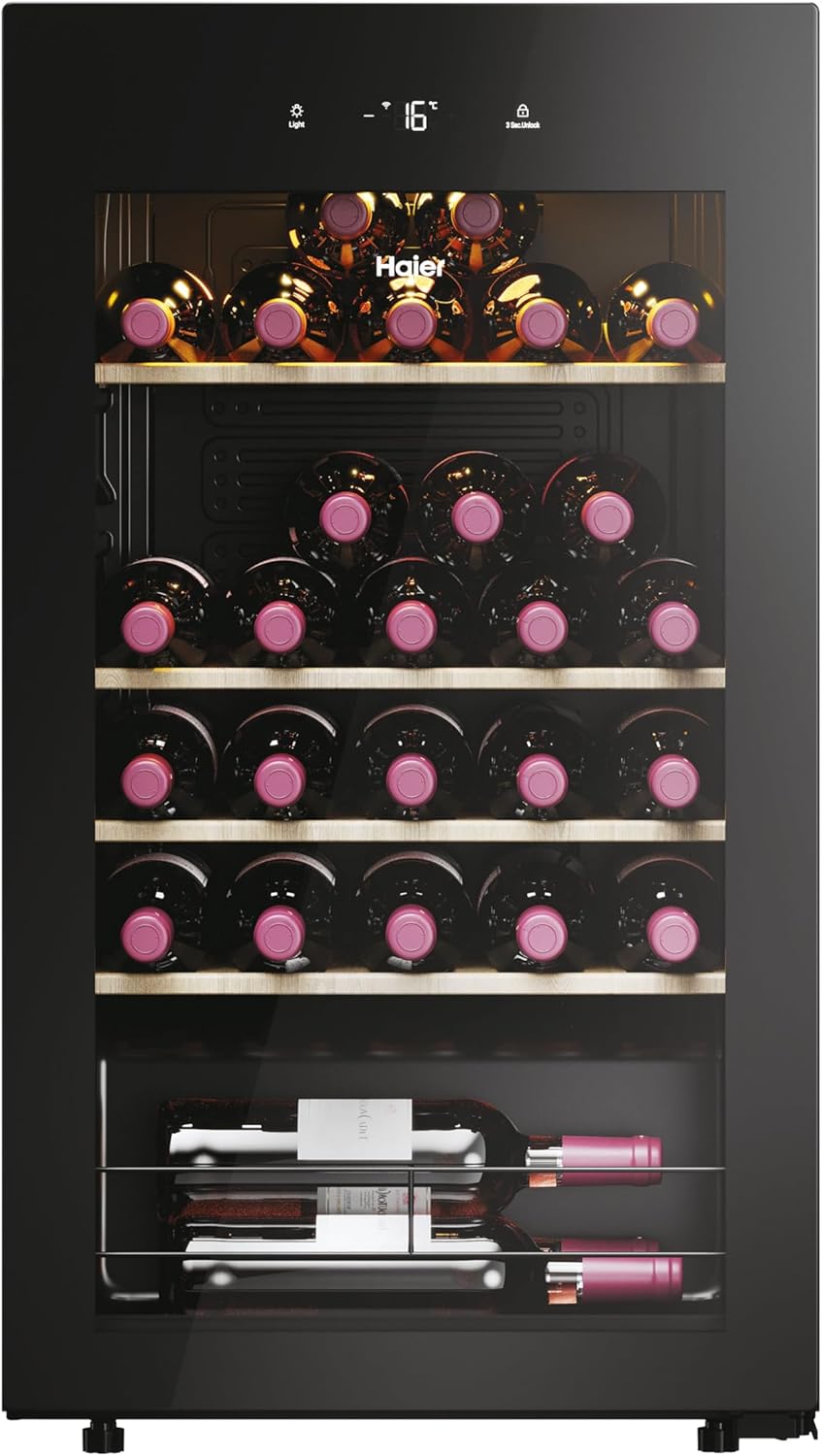 Vinoteca Haier para 34 Botellas - WIFI, Estantes de Madera, Silenciosa